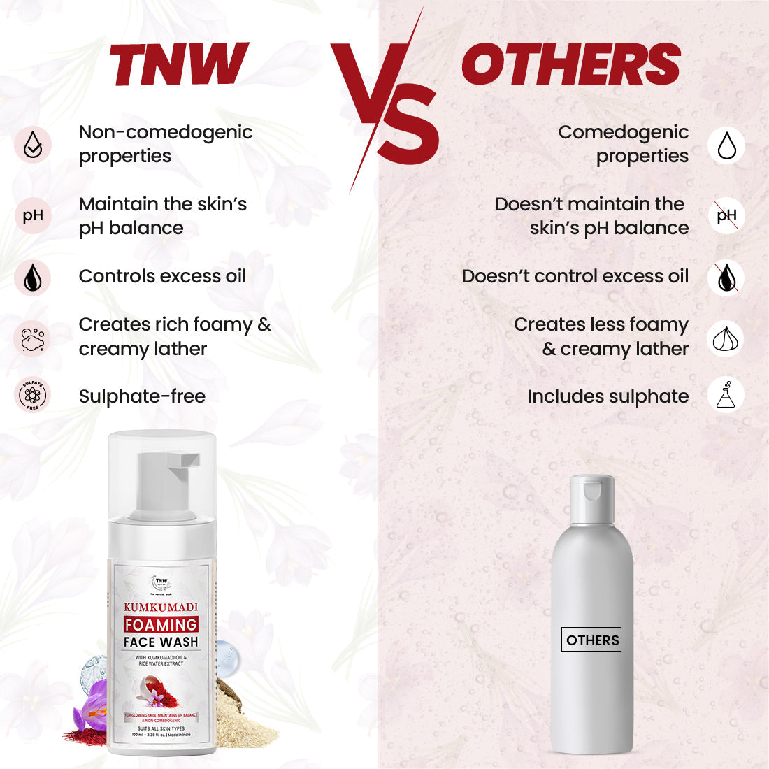 Free From Harsh Chemicals: Kumkumadi Foaming Face Wash is infused with skin-loving ingredients that do not cause any side effects to your skin.