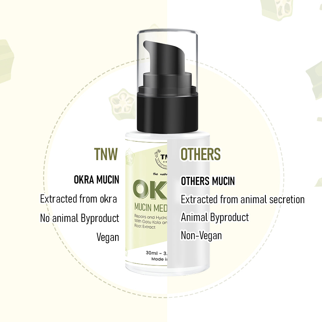 - Soothes and Repairs: TNW Okra Mucin Medley provides soothing care and gives you supple, comfortable skin.