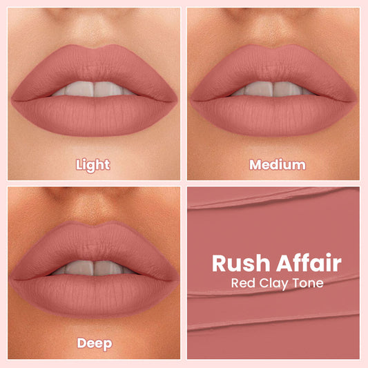 Comfy Matte Liquid Lipstick | 01 Rush Affair | Weightless, Hydrating & Long-Wear | Shea Butter, Hyaluronic Acid & Jojoba Oil | Paraben-Free | 3ml