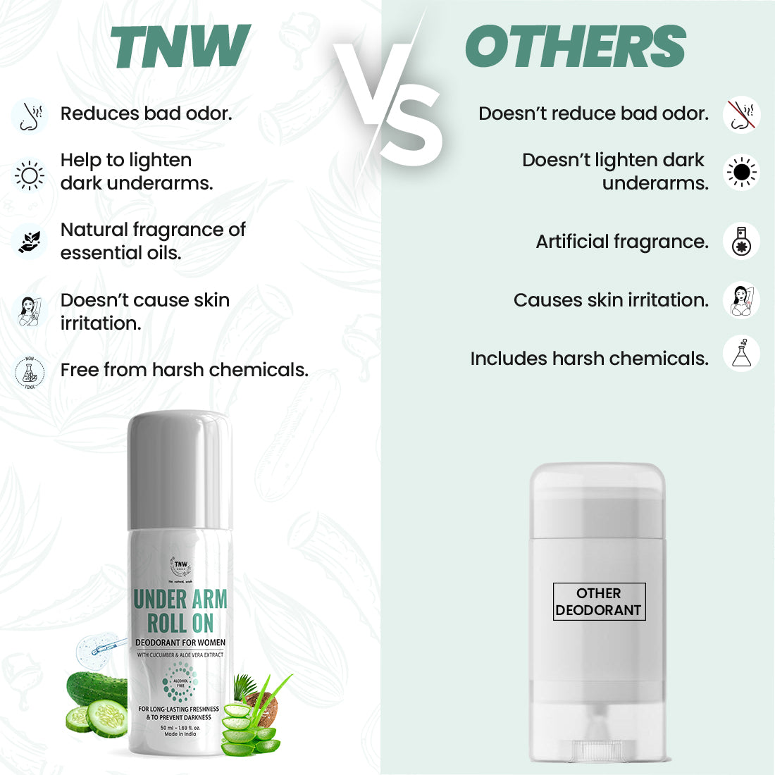Reduces the odor & controls excessive sweat: TNW Underarm Roll-On Deodorants are formulated with hyaluronic acid neutralises bad odour and prevents the clogging of sweat ducts.